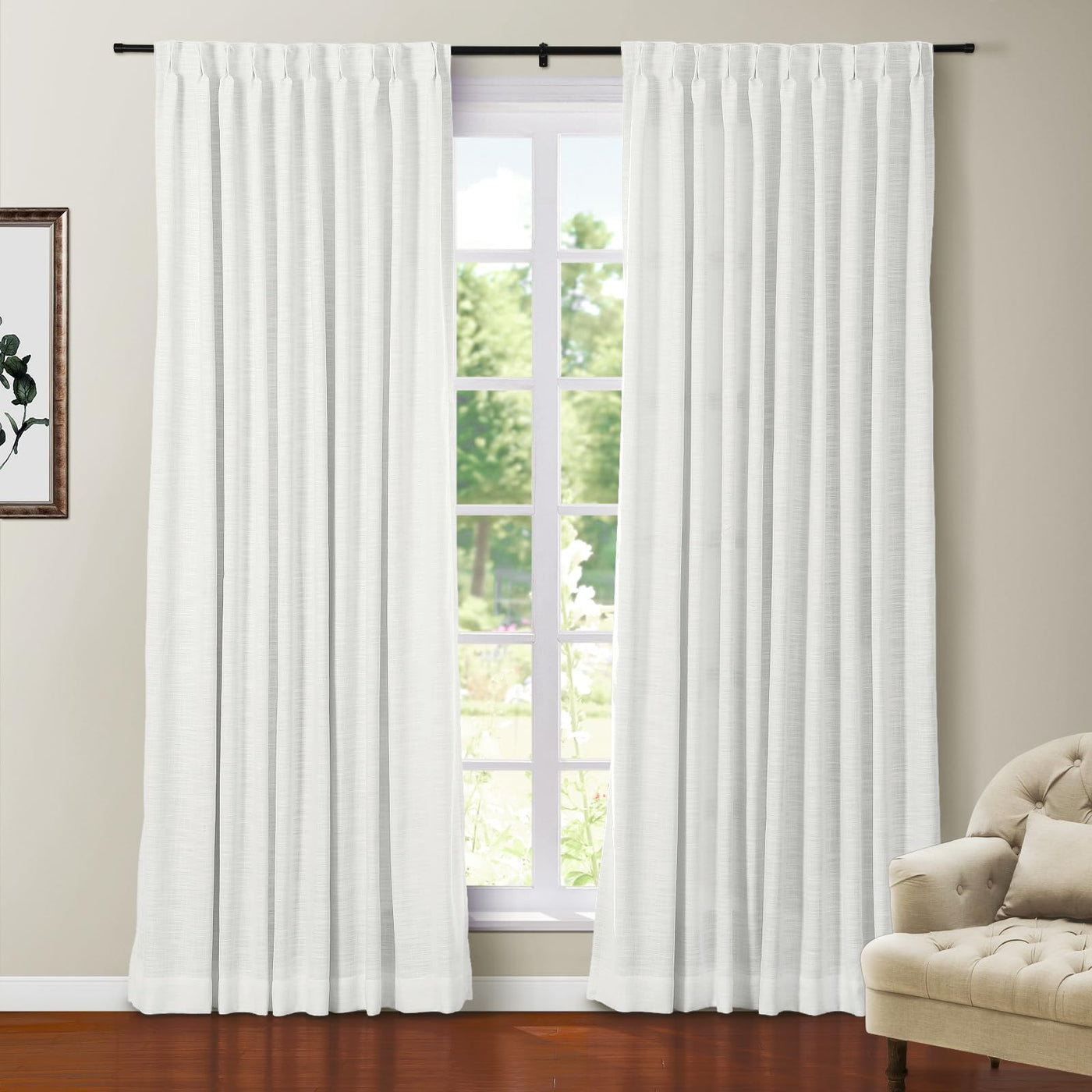 Twopages Faux Linen Curtain 96 Inches Long Blackout Warm White Textured Curtain With Liner For Living Room Thermal Insulated Dra