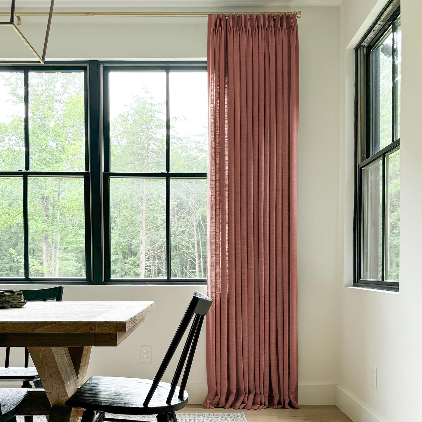 Twopages Firebrick Linen Pinch Pleat Drape For Living Room, Window Treatment Curtain Panel Double Layer Room Darkening Light Fil