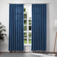 Twopages Navy Blue Linen Pinch Pleat Drape For Living Room, Window Treatment Curtain Panel Double Layer Room Darkening Light Fil
