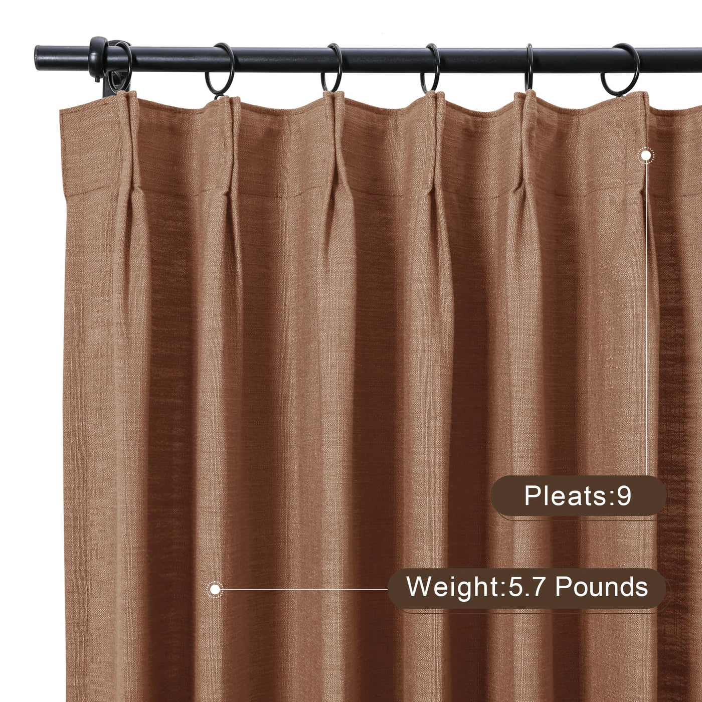 Twopages Orange Copper Linen Pinch Pleat Drape For Living Room, Window Treatment Curtain Panel Double Layer Room Darkening Light