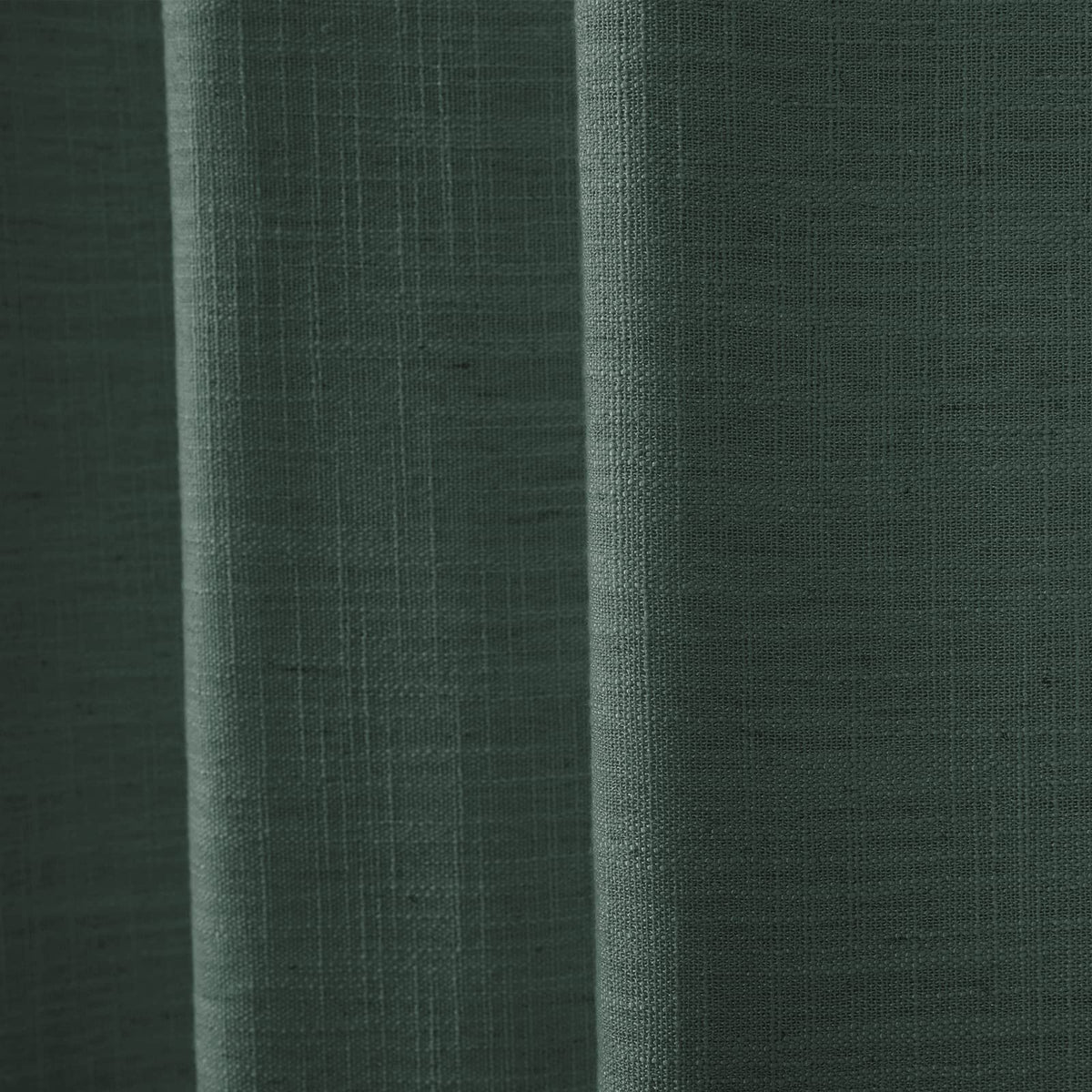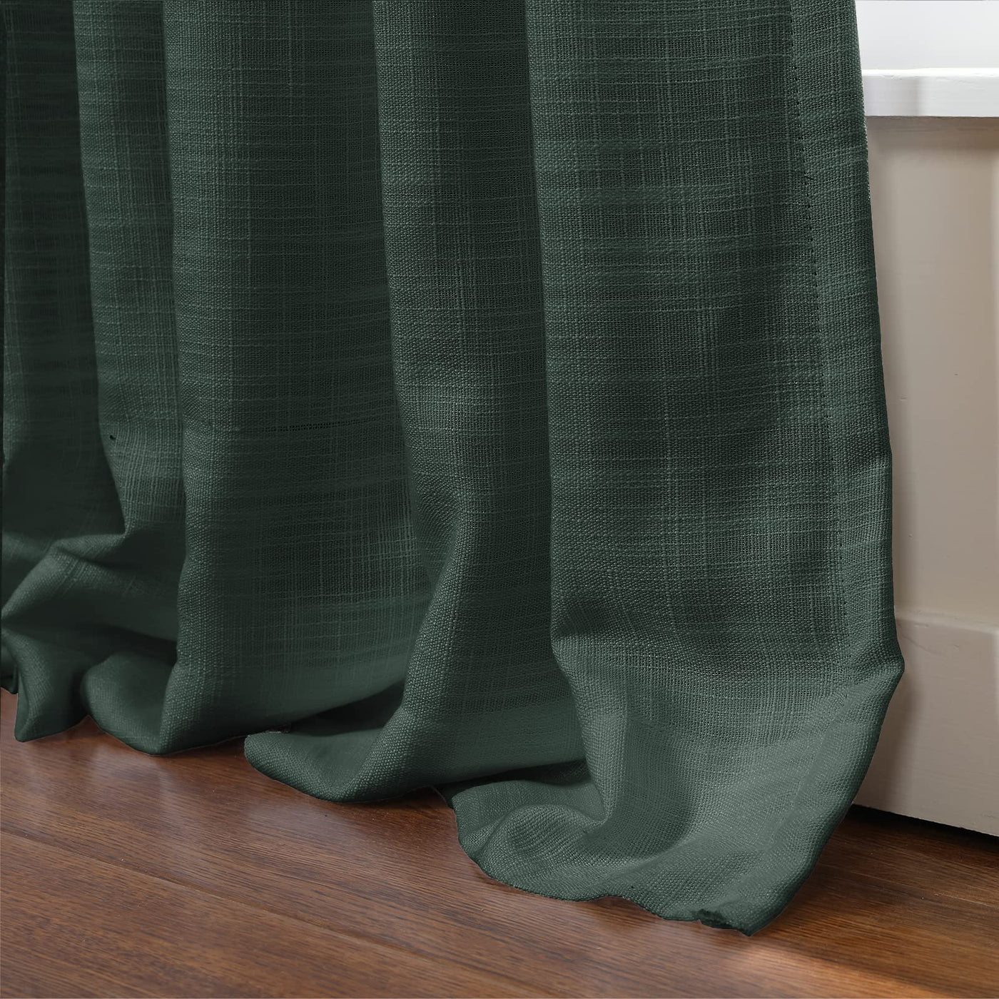 Twopages Polyester Linen Blackout Hunter Green Curtain For Living Room Thermal Insulated Drape With Pinch Pleat And Back Tab Top