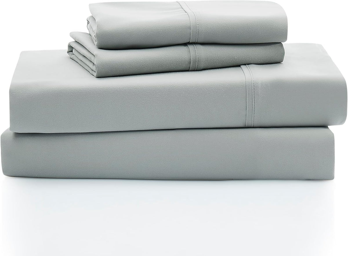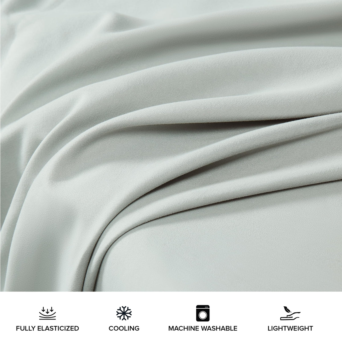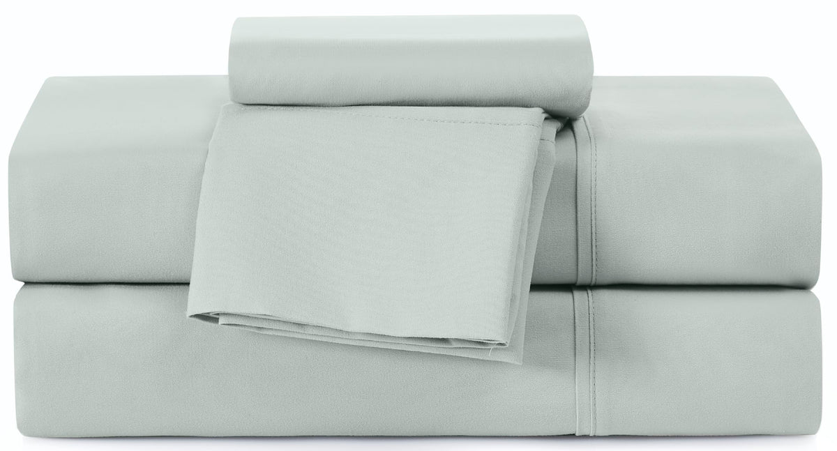 Experience the signature comfort of UGG with the Hedi Mineral Light Green Queen Sheet Set, designed with ultra-soft fabric and cooling properties for a refreshing sleep. This sheet bedding set is a bedroom essential, whether for a master bedroom or guest room. Made from high-end down alternative polyester, these soft, elegant sheets complement styles ranging from coquette to boho bedding theme. Designed with deep pocket construction, the fitted sheet is fully elasticized, ensuring a secure fit that stays in place. Hedi hypoallergenic sheets are gentle on sensitive skin, while these cooling bed sheets for hot sleepers enhances comfort. The lightweight material supports year-round use. They are machine washable and shrink preventative to maintain shape and durability after wash. For those updating their bedroom decor aesthetic or furnishing for guest room essentials, these cute bed sheets have a high-end bedroom style. Available in Twin, Twin XL, Full, Full XL, Queen, King, California King, and Split King. The queen set flat sheet is 94-inch x 104-inch or 239cm x 264cm, the cooling fitted sheet is 60-inch x 80-inch with 16-inch pockets, or 152cm x 203cm x 41cm, and set includes two pillowcases 21-inch x 31-inch or 53cm x 78cm. Weight is 100gsm.