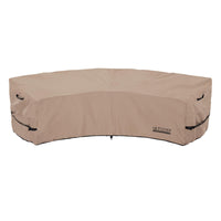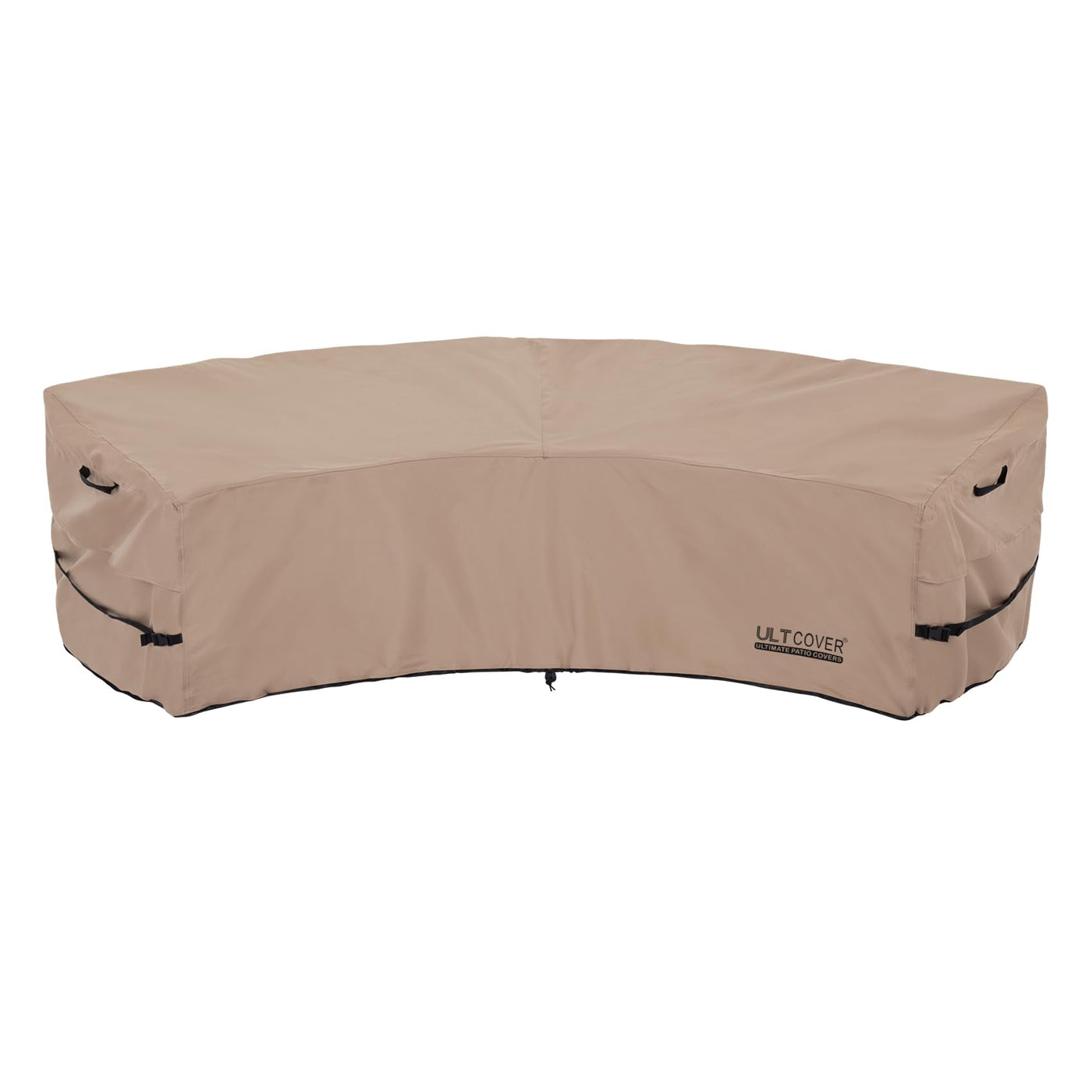 General To Fit Patio Curved Sofa Sectional Furniture Sets Size Upto 126'(Back Arc Length) / 82'(Front Arc Length) X 32'(Deep). Please Measure Your Outdoor Sofa Overall Dimensions Before Order. Made Of 600D Polyester Canvas Complex With Waterproof Backing. Tough Enough To Keep Rain, Hail, Snow, Dust, Leaves And Bird Droppings Away. Well-Made Structured Air Vents At Two Sides Keep Ventilation, Prevent The Cover From Being Blown Away, Also Keep Your Furniture Dry And In Good Condition. Plastic Clips & Heavy Duty Elastic Draw Cords Secured To Outdoor Loveseat Leg, Especially During High Winds And Severe Weather. Full Coverage Design Avoids The Exposure Of Furniture In The Sun Makes Your Couch Always Look Like New.