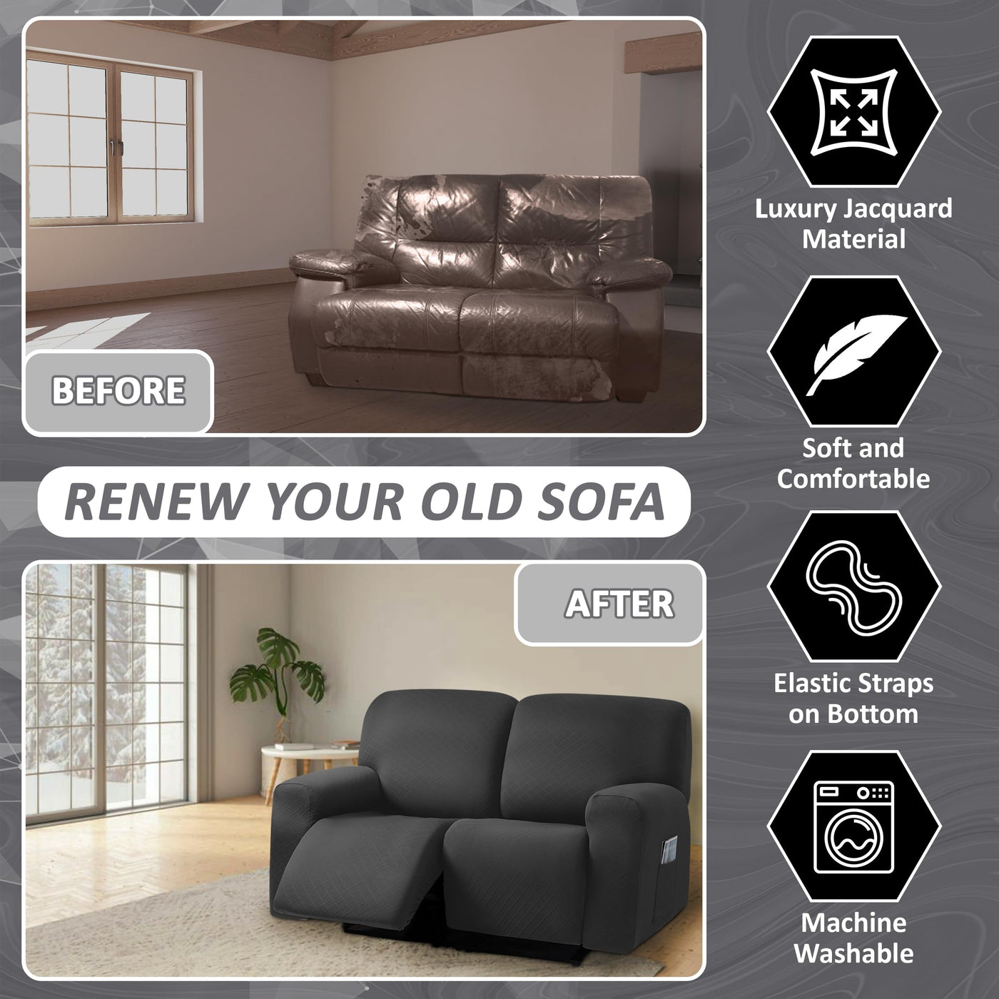 Ultimate Decor'S 2 Seater Love Seat Sofa Recliner Covers Is Crafted From Luxurious High Quality Jacquard Fabric, And Is Very Soft, Comfortable And Sturdy , Made To Feel As Good As A Custom Sofa Reclining Cover, Made With Elastic Rubbers Around The Edges To Stay Fit On The Love Seat With Elastic Ropes To Tie To The Frame So It Would Stay Fit On The Love Seat Sofa Even After Sitting On It. Made With 6 Separate Pieces Including 2 Arm Pieces, 2 Seat Pieces And 2 Back Cover Pieces, So It Would Snuggle On To Your 2 Seater Loveseat Sofa And It Will Renew Your Old Sofa And Keep Protected From Daily Wear And Stains Saving You Money By Extending The Life Time Of Your Love Seat Sofa. Getting A New Sofa Is Expensive But Changing The Color Isn'T So If You Are Bored Of The Color Of Your Sofa It Can Easily Be Updated By Putting On The Love Seat Sofa Slipcover. Its Easy To Install And It Would Take Less Then 12 Minutes By One Person To Put On. Its Machine Washable For Easy Care And Maintenance, Wash In Cold Water On A Gentle Cycle With Mid Laundry Detergent, Do Not Use Bleach, Iron On A Low Heat. Please Measure Your Loveseat And See Our Measurement Diagram Before Purchasing , To Make Sure It Will For Your Loveseat
