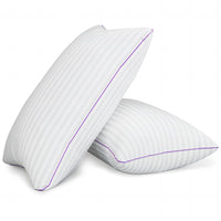 Q: What materials are used in the VAINOC Queen Size Pillows?A: The VAINOC Queen Size Pillows are filled with a blend of 50% Hollow Fiber and 50% Gel Fiber, providing a perfect balance of softness and support. The shell is made from breathable microfiber fabric, ensuring a comfortable sleeping experience.