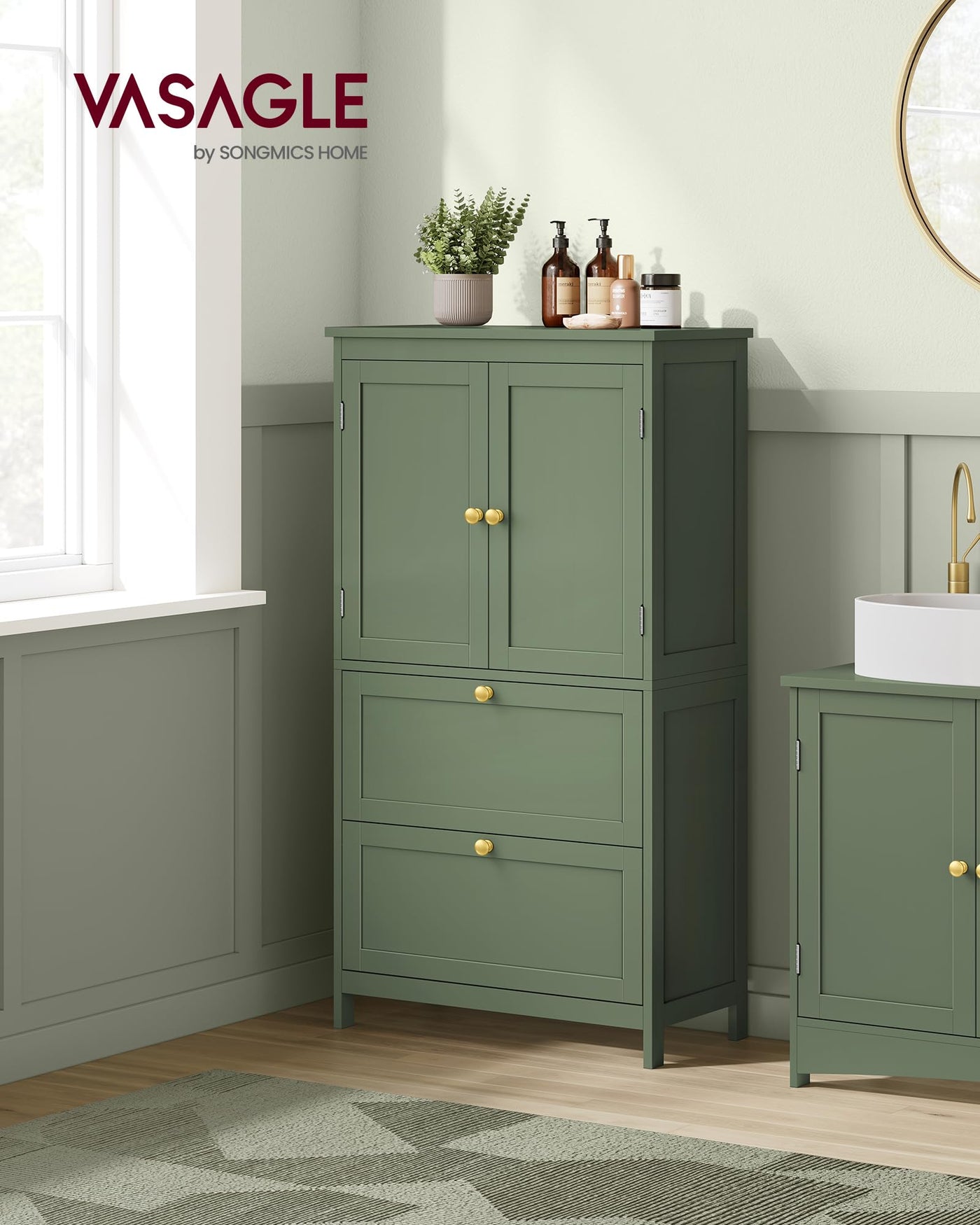 Vasagle Bathroom Floor Storage Cabinet, Bathroom Storage Unit, Freestanding Cabinet With 2 Drawers And 2 Doors, Adjustable Shelf, 11.8 X 23.6 X 43.3 Inches, Forest Green Ubbc551C01