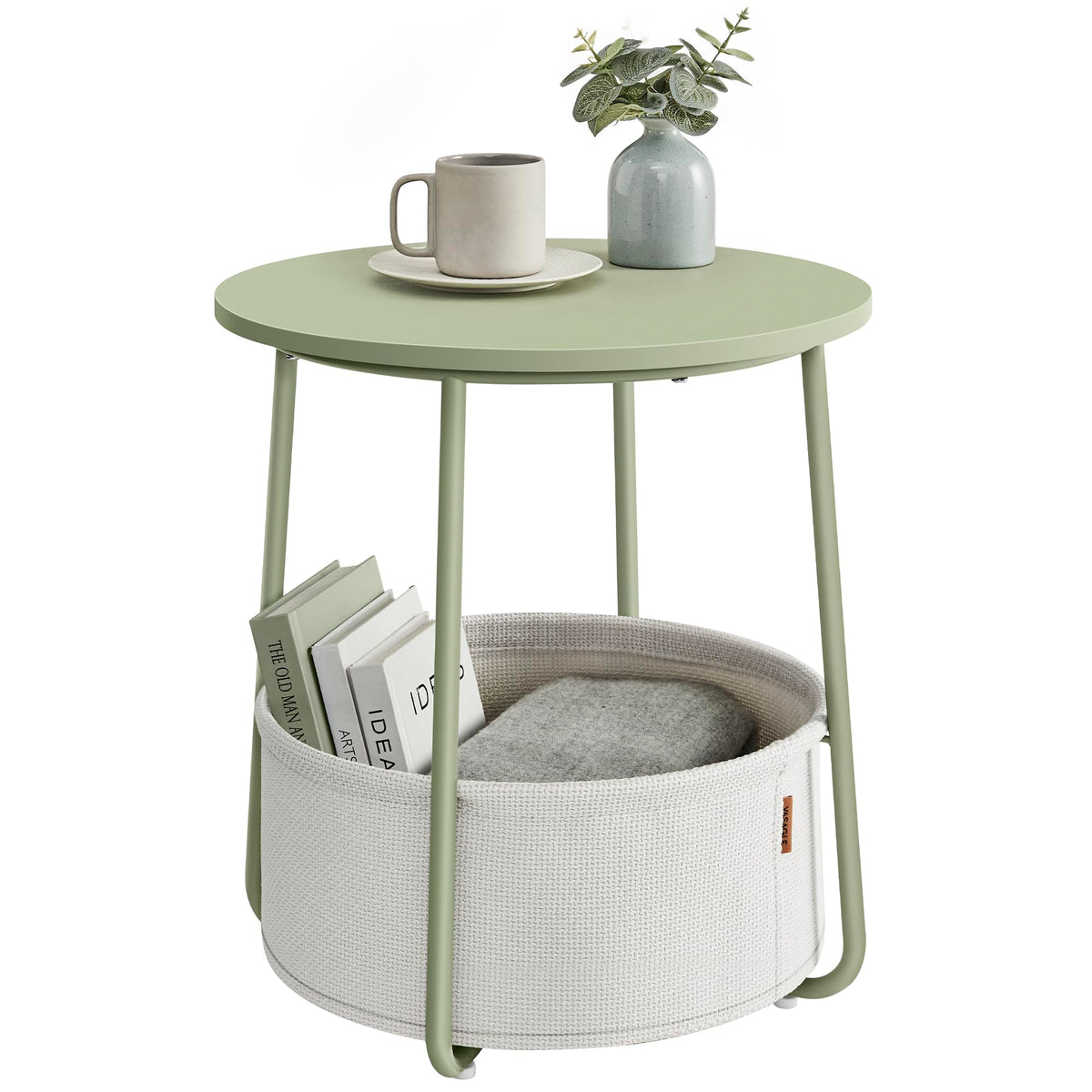 Vasagle End Table, Small Bedside Table With Fabric Basket, Modern Nightstand, Round Side Table, For Living Room, Bedroom, Laurel Green And Cream White Ulet223C69