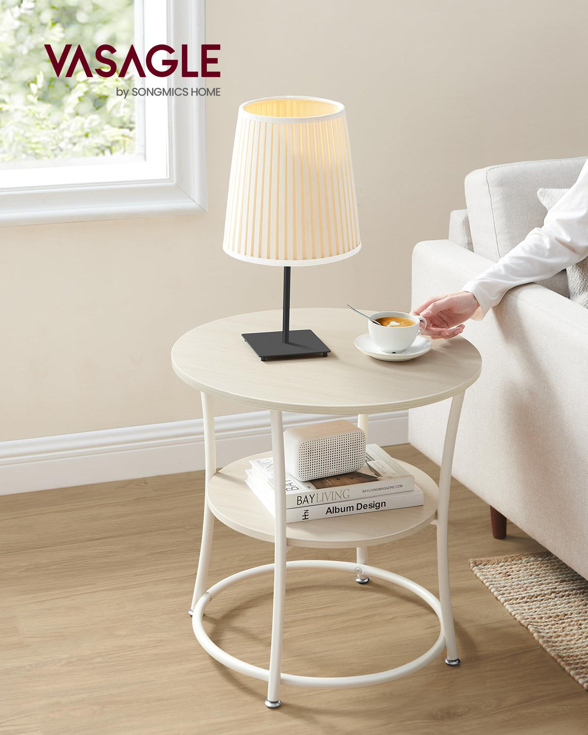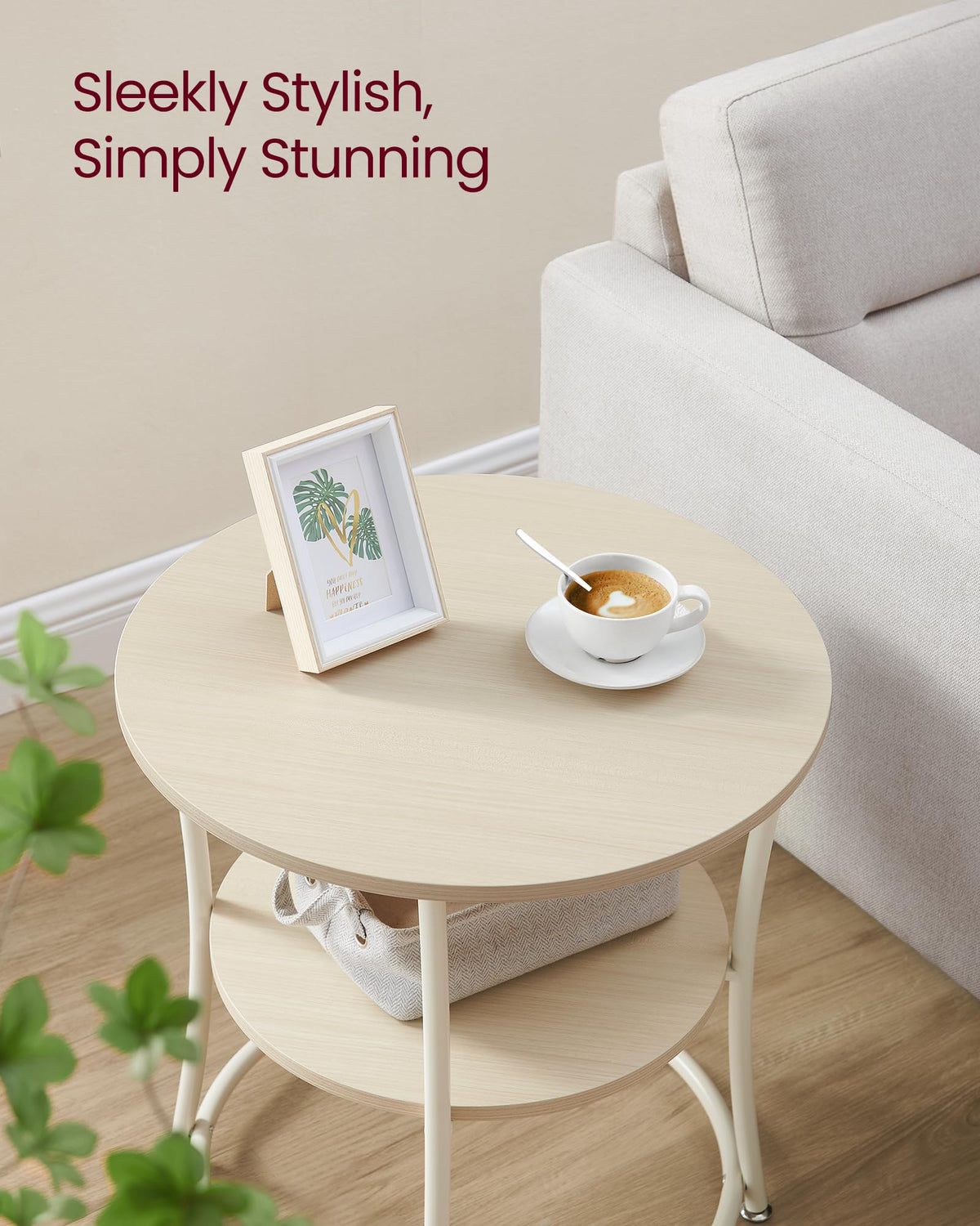 Vasagle Side Table, Round End Table With 2 Storage Shelves For Living Room, Bedroom, Nightstand With Steel Frame For Small Spaces, Accent Coffee Table, Natural Beige
