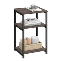 Specifications: - Color: Chestnut Brown, Classic Black - Material: Particleboard, Steel - Product Size: 11.8'D x 13.4'W x 22.8'H (30 x 34 x 58 cm) - Product Weight: 10.8 lb (4.9 kg) - Max. Static Load Capacity per Level: 44 lb (20 kg) Package Contents: - 1 x Side Table - 1 x Assembly Kit - 1 x Instructions VASAGLE Notes: - Children are not allowed to climb on or play with the product for safety reasons.