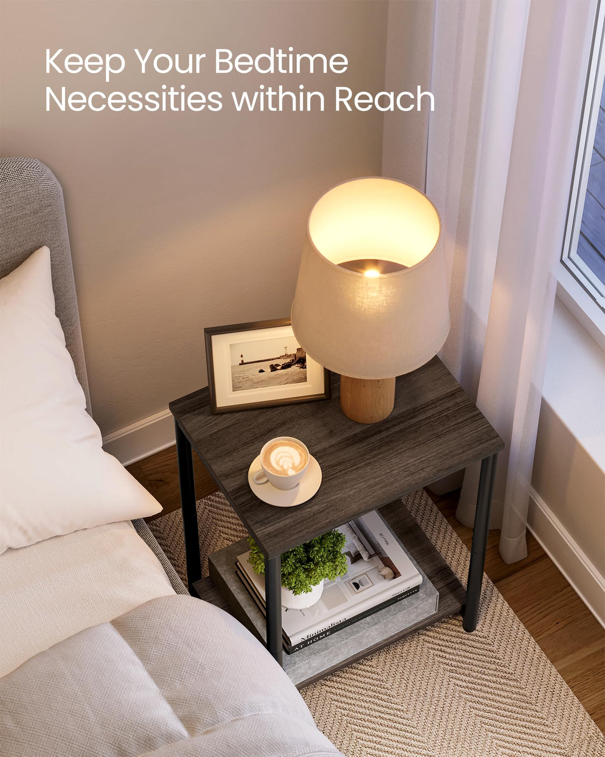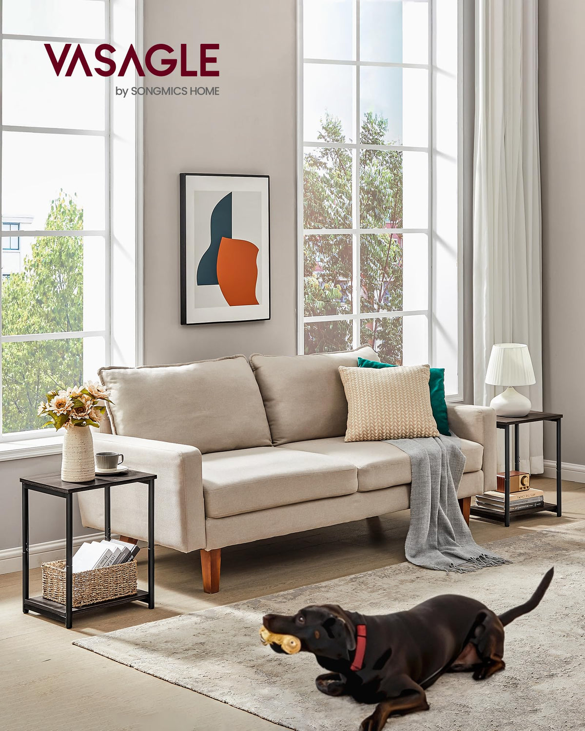 Specifications: - Color: Chestnut Brown, Classic Black - Material: Particleboard, Steel - Size of Each Table: 11.8”D x 15.2”W x 19.7”H (30 x 38.5 x 50 cm) - Weight of Each Table: 7.9 lb (3.6 kg) - Max. Static Load Capacity per Tier: 44 lb (20 kg) Package Contents: - 2 x Side Table - 1 x Assembly Kit - 1 x Instructions VASAGLE Notes: - Children are not allowed to climb or play on these tables for safety reasons.