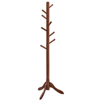 Specifications: - Color: Dark Walnut - Material: Solid Wood - Product Size: 18.5”D x 18.5”W x 68.9”H (47 x 47 x 175 cm) - Length of Each Hook: 4.8” (12.3 cm) - Product Weight: 5.5 lb (2.5 kg) - Max. Static Load of Each Hook: 6.6 lb (3 kg) - Total Max. Static Load: 53 lb (24 kg) Package Contents: - 1 x Coat Rack - 1 x Instructions VASAGLE Notes: - Do not expose the coat rack to direct sunlight for a long time. - Do not touch the standing coat rack with sharp objects.