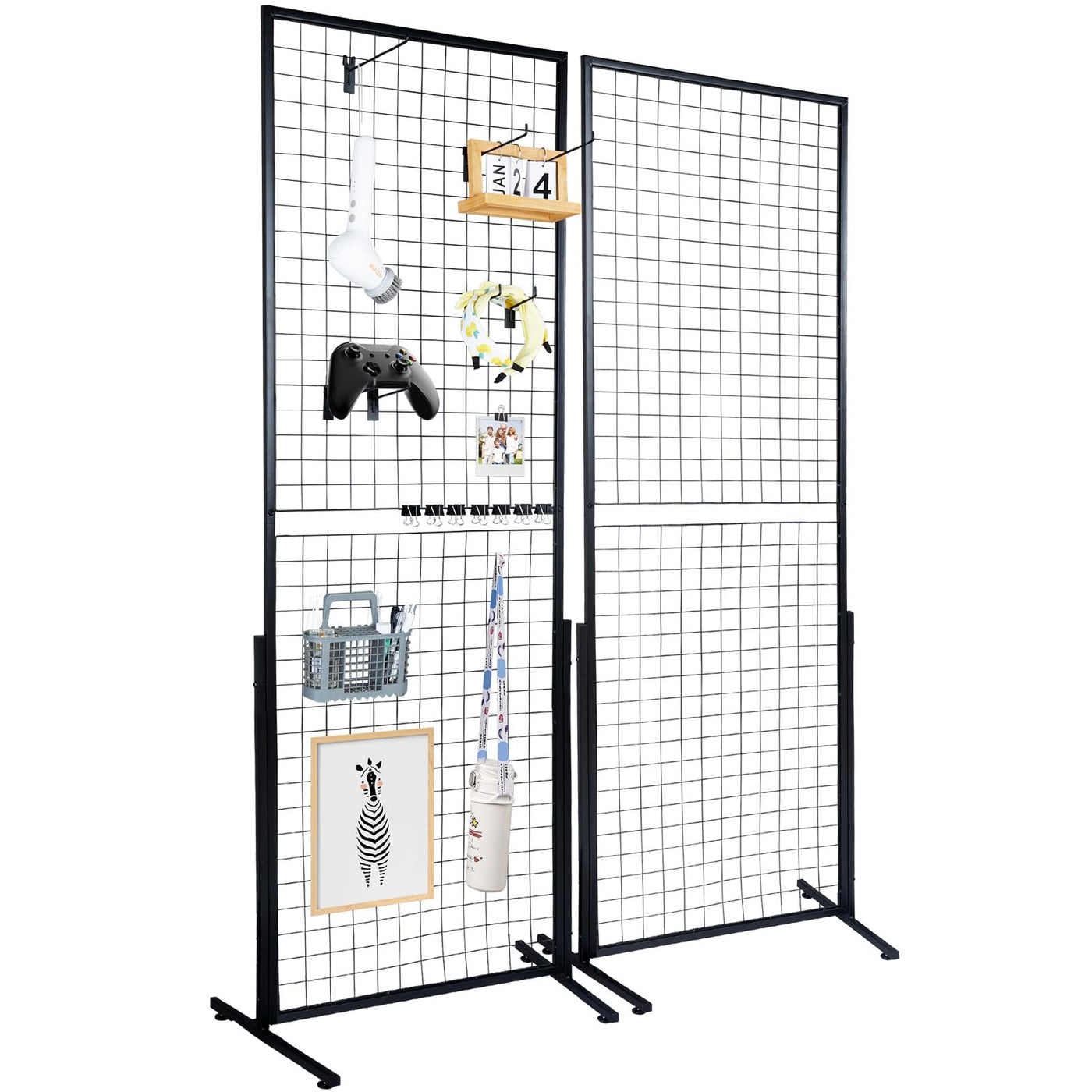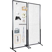 Vevor 2' X 5.6' Grid Wall Panels Tower, 2 Packs Wire Gridwall Display Racks With T-Base Floorstanding, Double Side Gridwall Pane