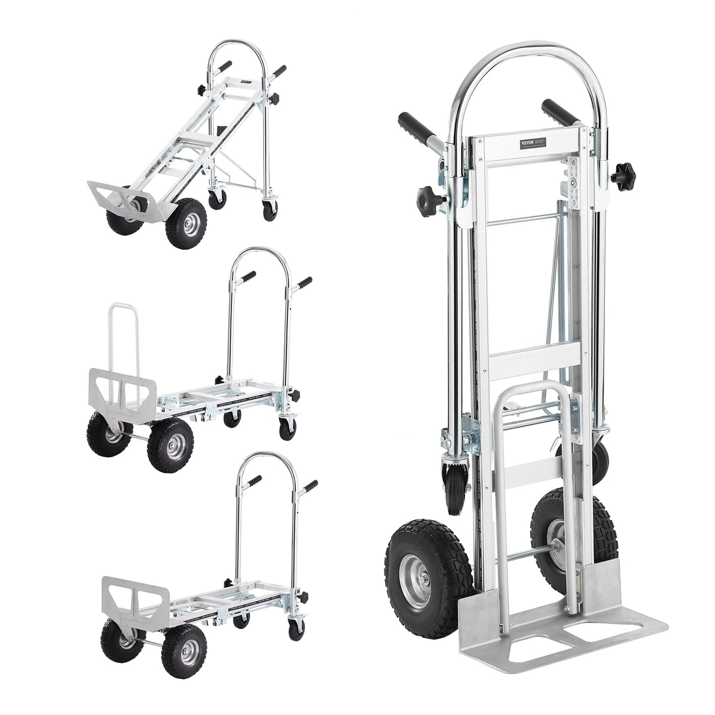 Vevor Aluminum Folding Hand Truck, 4 In 1 Design 1000 Lbs Capacity, Heavy Duty Industrial Collapsible Cart, Dolly Cart With Rubb