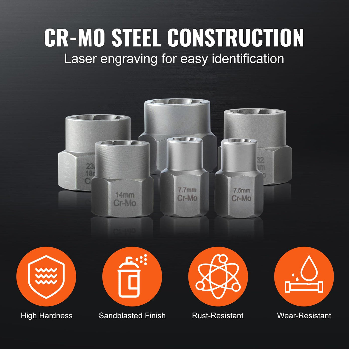 Vevor Bolt Extractor Set, 32-Piece Bolt And Nut Remover Set, 6Mm To 10Mm, 13/32'' To 3/4'', Cr-Mo Steel Extraction Socket Set Wi