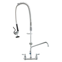 Vevor Commercial Faucet With Pre-Rinse Sprayer, 36'' Height, 8'' Center, 12'' Swing Spout, Wall Mount Kitchen Sink Faucet, Brass