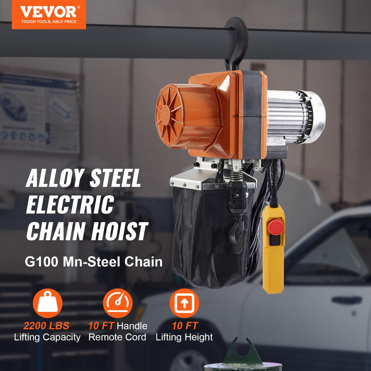 Vevor Electric Chain Hoist, 2200 Lbs/1 Ton Capacity, 10 Ft Lifting Height, 10 Ft/Min Speed, 120V, Single Phase Overhead Crane Wi