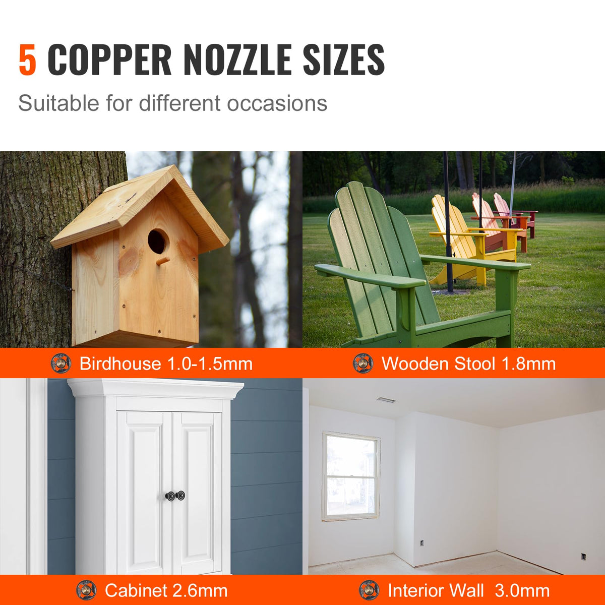 Vevor Paint Sprayer, 1300W Electric Spray Paint Gun With Air Hose, 1300Ml And 800 Ml Containers, 5 Copper Nozzles, 150 Din Hvlp
