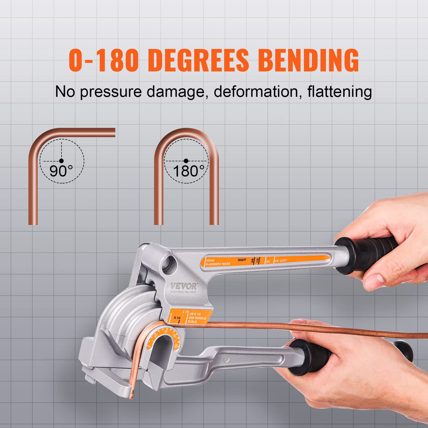 Vevor Pipe Tube Bender, 1/4'', 3/8'', 1/2'' Od, 3 In 1 Manual Level Tube Bender, 180 Copper Aluminum Pipes Bending Tools For Hva