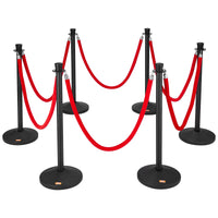 Vevor Stanchion Posts With Velvet Ropes, 6-Pack Crowd Control Stanchion With 6Pcs 5Ft Red Velvet Ropes, Carbon Steel Baking Pain