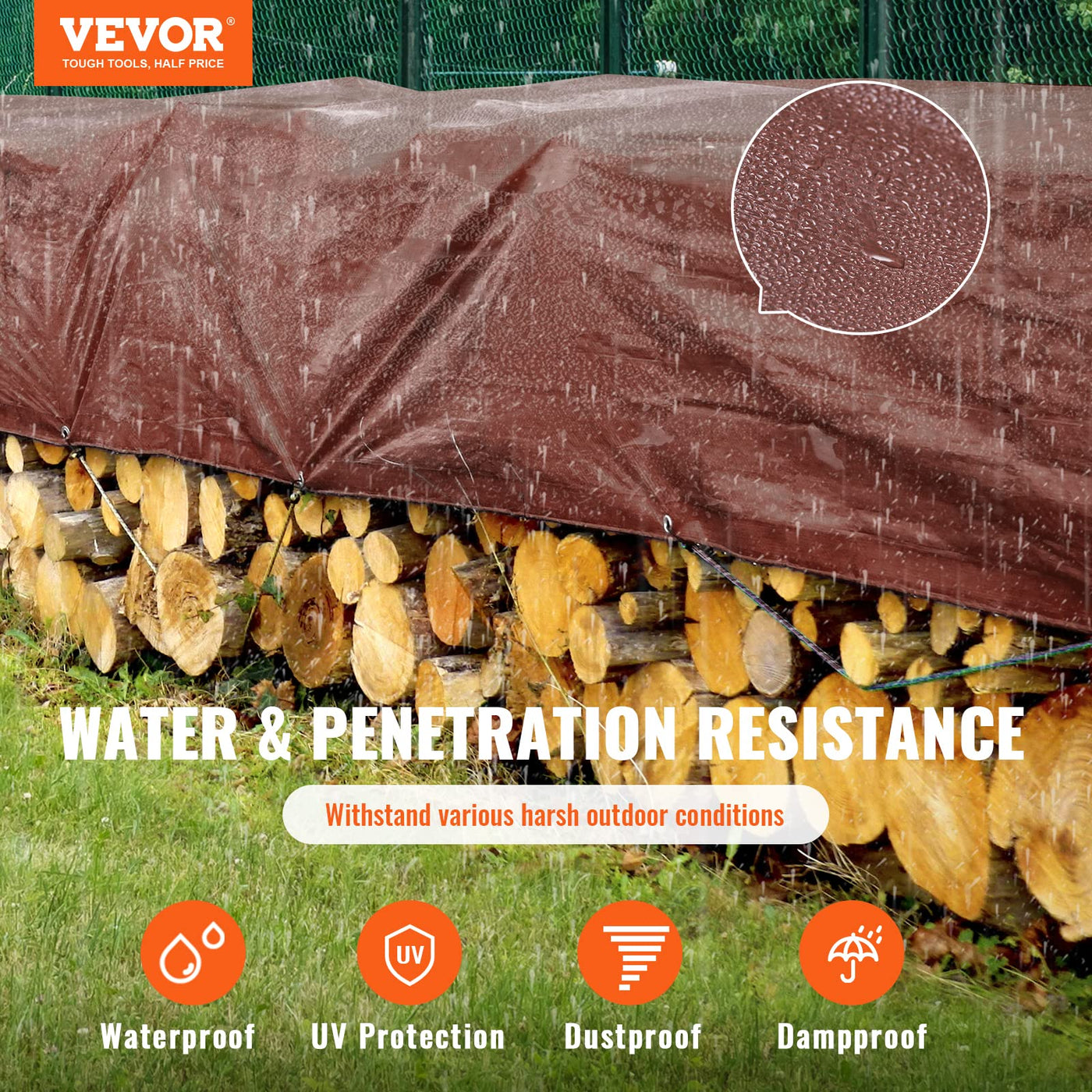 Vevor Tarp Heavy Duty Waterproof 10X12 Ft, 16 Mil Extra Thick Plastic Poly Tarp Cover, Multi Purpose Tear Uv And Temperature Res