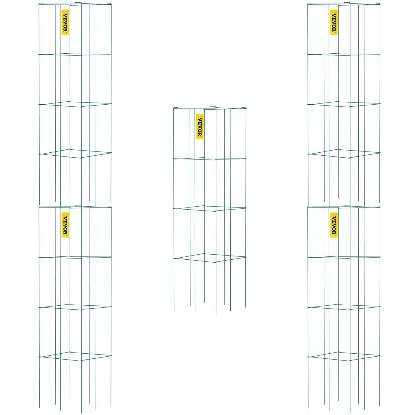 Vevor Tomato Cages, 11.8' X 11.8' X 46.1', 5 Packs Square Plant Support Cages, Green Pvc-Coated Steel Tomato Towers For Climb
