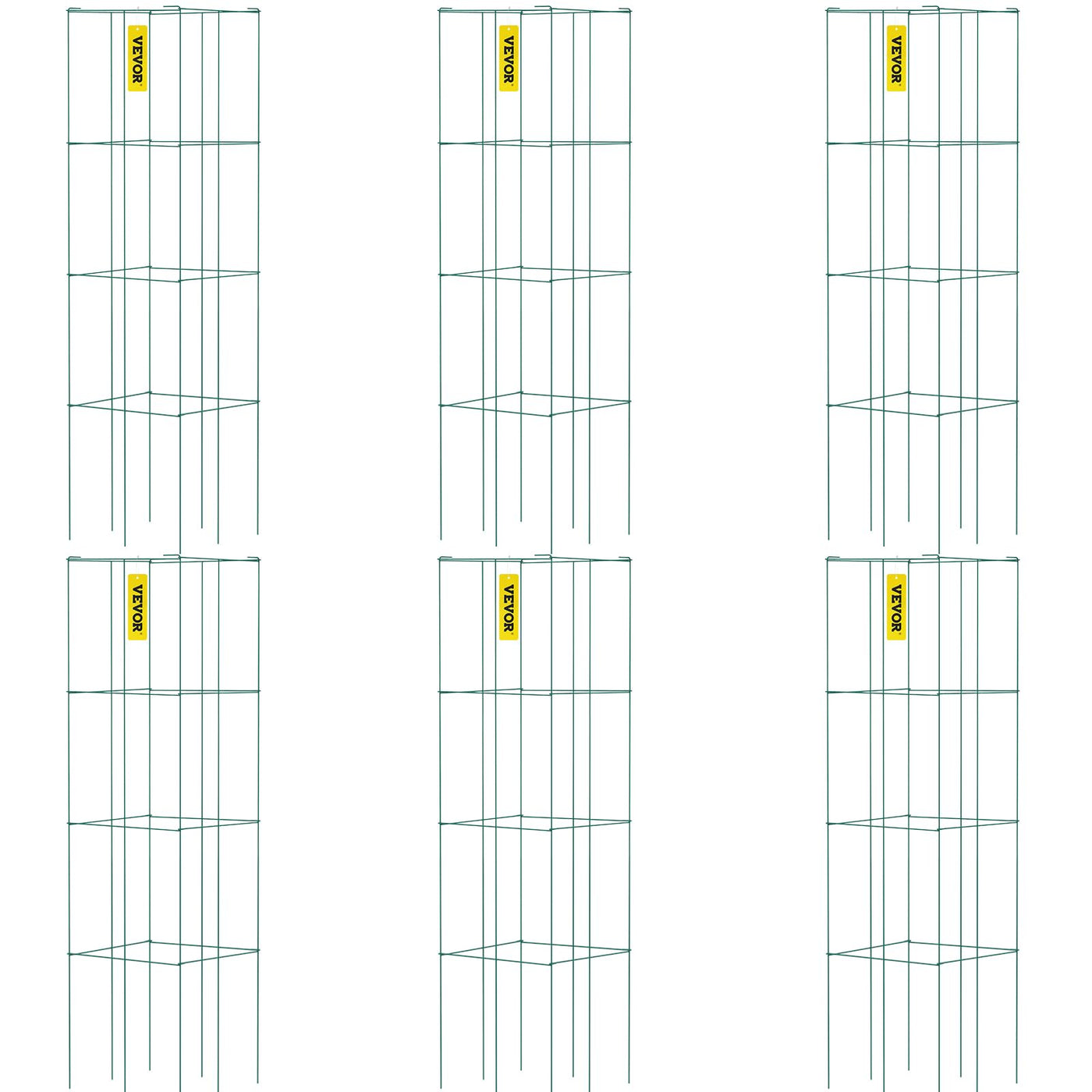 Vevor Tomato Cages, 14.6' X 14.6' X 39.4', 6 Packs Square Plant Support Cages, Green Pvc-Coated Steel Tomato Towers For Climb