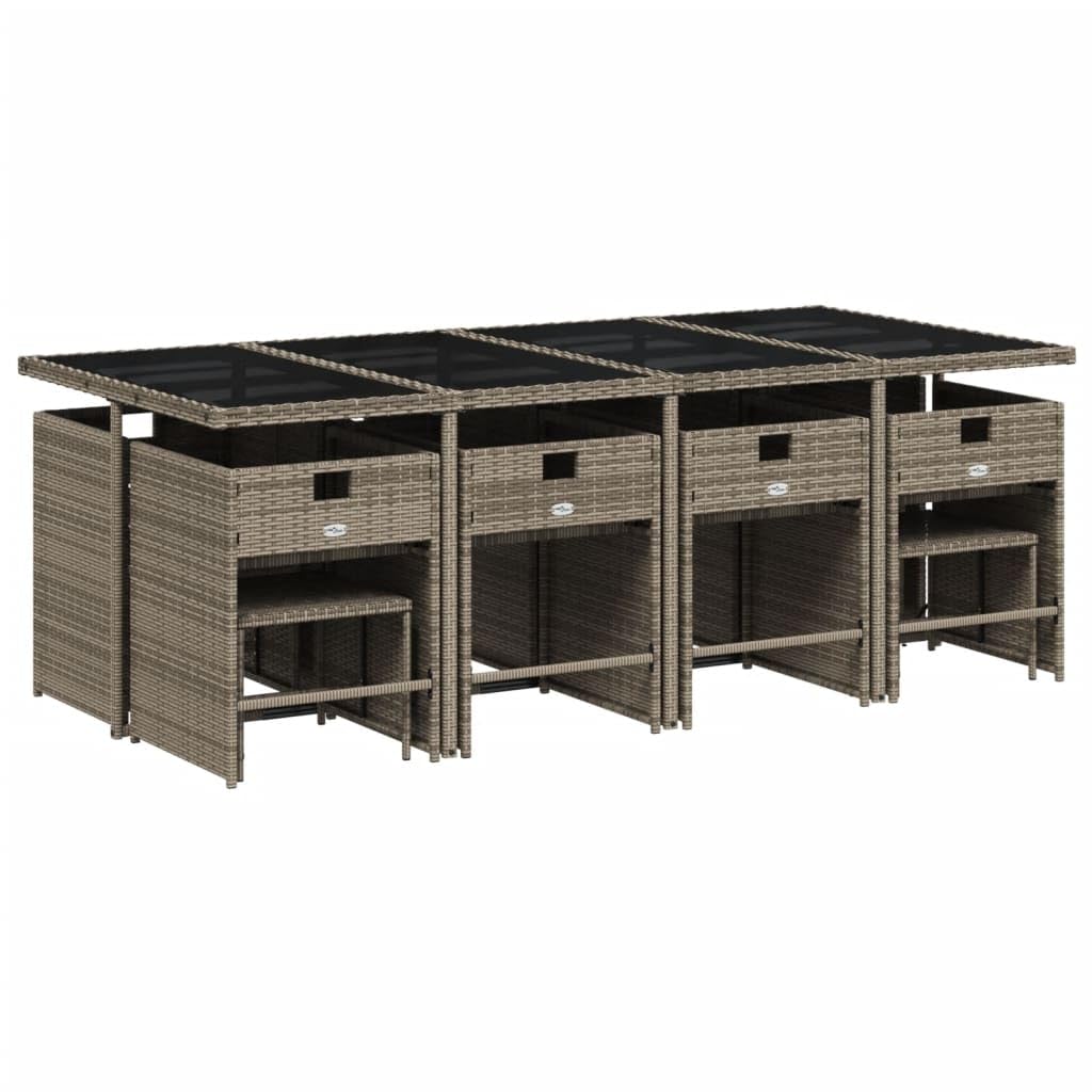 ** vidalXL Patio Dining Set with Cushions 13 Piece Outdoor Garden Furniture Gray Poly Rattan