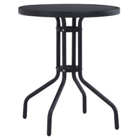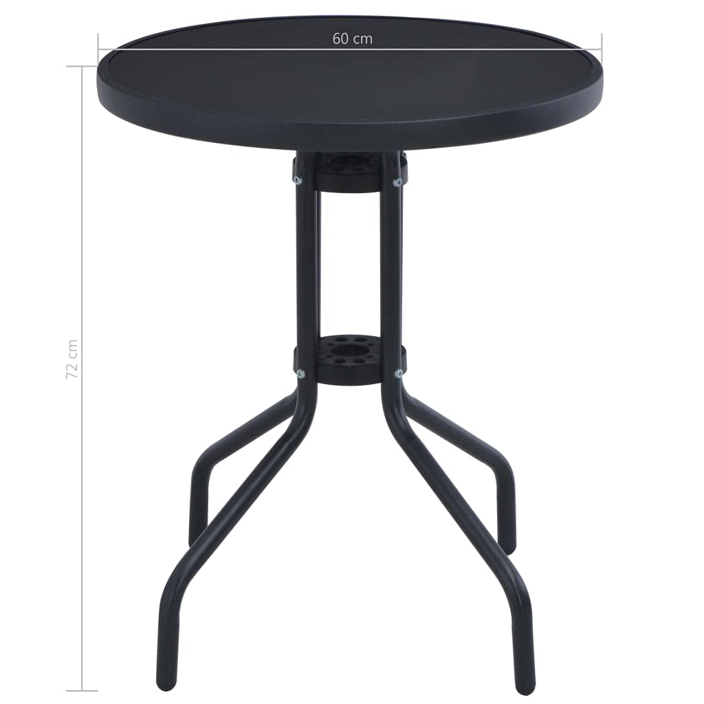 vidaXL 23.6" Round Patio Table - Elegant Outdoor Furniture with Powder Coated Steel Frame and Silky Print Glass Top – Black