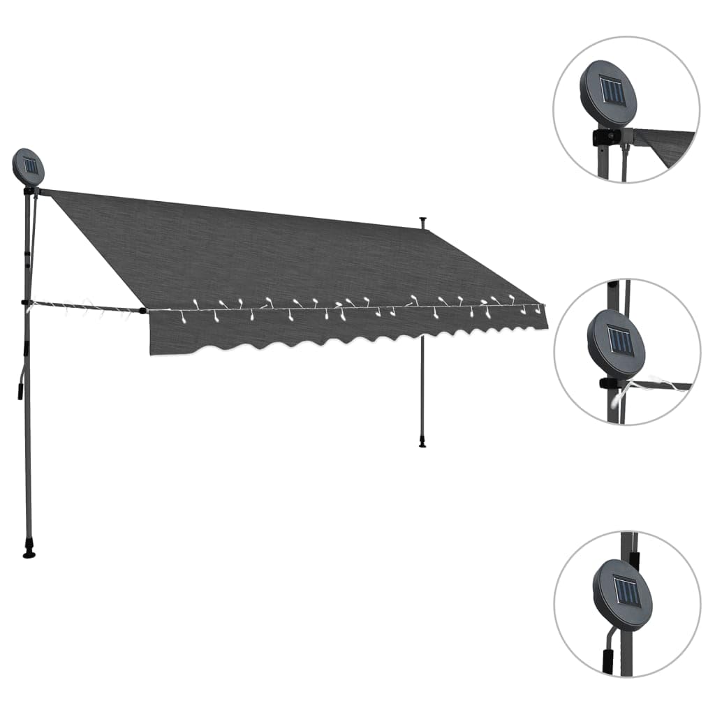 Vidaxl Manual Retractable Awning With Led Lights, 157.5" - Anthracite