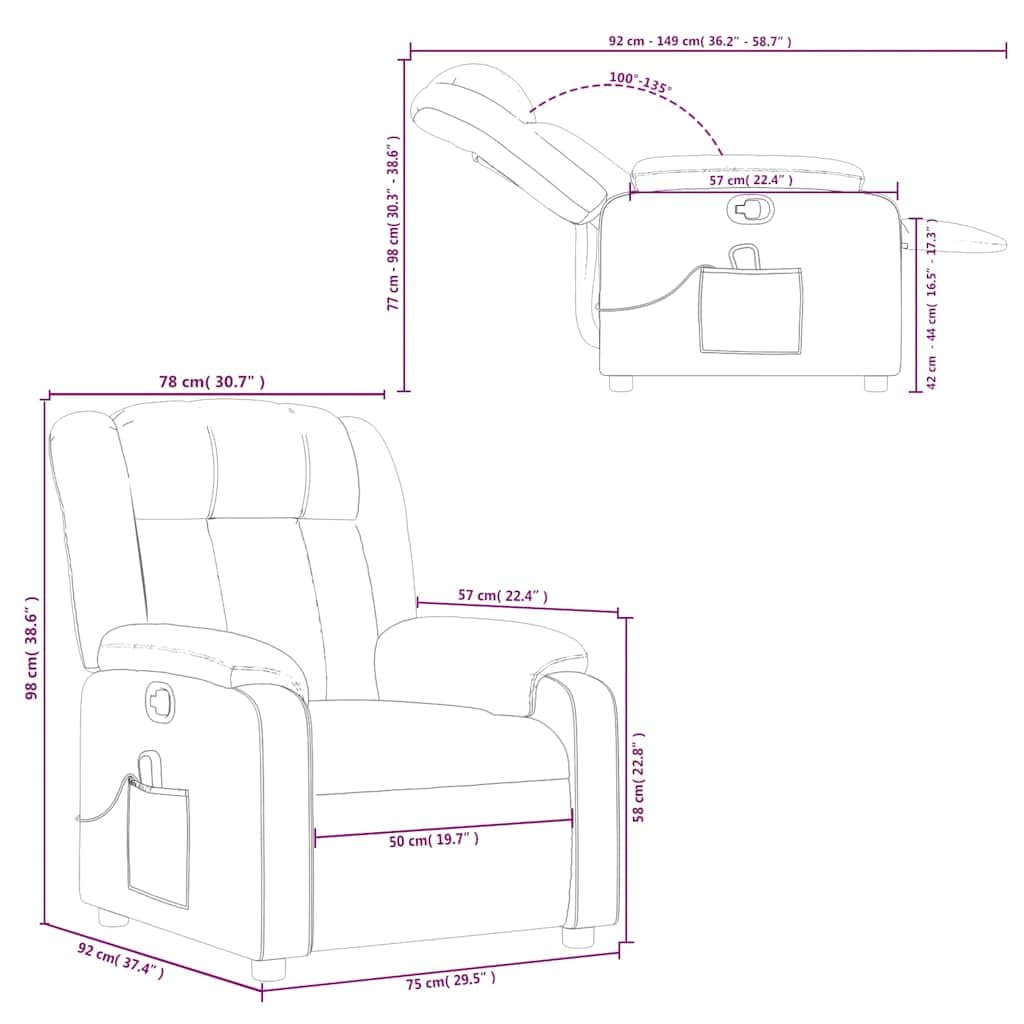 Solid and stable frame: The frame made of wood and metal provides a strong structure and stability. This reclining armchair is comfortable and durable.