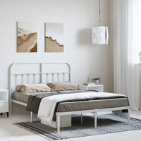 vidaXL Metal Bed Frame with Headboard White 59.1x78.7
