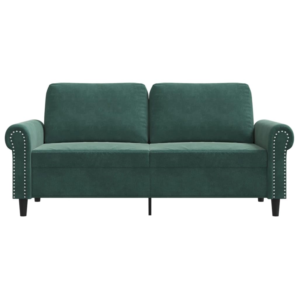 vidaXL Modern 2-Seater Sofa in Velvet Fabric with Densely Padded Seat and Armrests - Dark Green