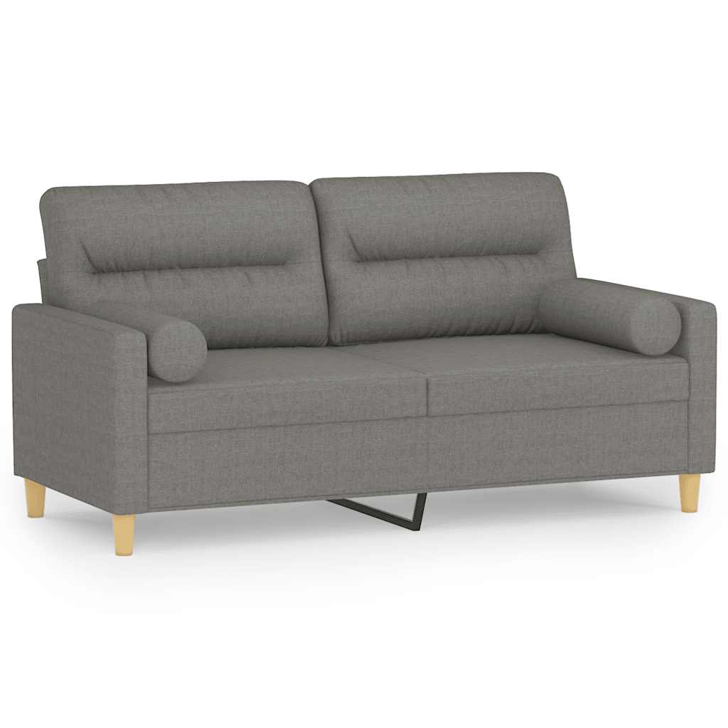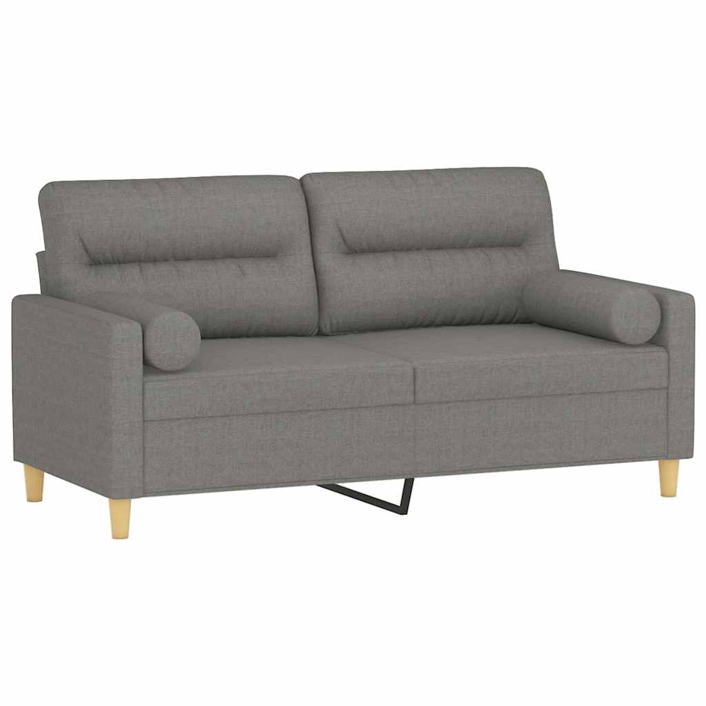 Vidaxl Modern 2-Seater Sofa With Cushions And Pillows, Dark Gray, Fabric Upholstery, Foam And Polypropylene Cotton Filling, 62.2" Width