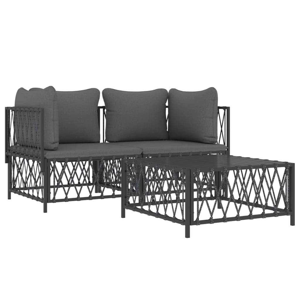 vidaXL Modern 3 Piece Patio Lounge Set - Anthracite Steel Frame with Woven Fabric -Comfortable Garden Outdoor Lounge Set with Cushions - Flexible and Sturdy