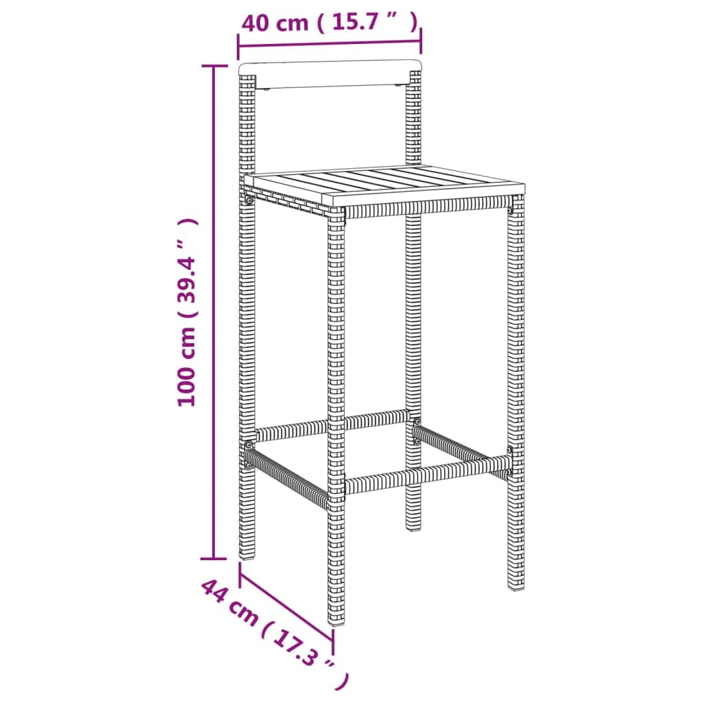 vidaXL Modern Bar Stools - 4 pcs Set with Black Poly Rattan and Solid Acacia Wood Seat, Durable Steel Frame, Indoor/Outdoor Furniture