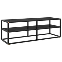 This TV cabinet, featuring a sleek and streamlined design, is meant to be a practical addition to your existing living space. This stereo cabinet is made of tempered glass, sturdy and stable. It is also easy to clean with a damp cloth. The powder-coated steel frame adds to its sturdiness. The shelf under the tabletop provides ample storage space to keep your DVDs, multimedia appliances, books and small essential items organized and within reach.Color: BlackMaterial: Tempered glass, powder-coated steelDimensions: 47.2 x 15.7 x 15.7 (L x W x H)Glass thickness: 0.2Max. load capacity (total): 165.3 lbAssembly required: Yes