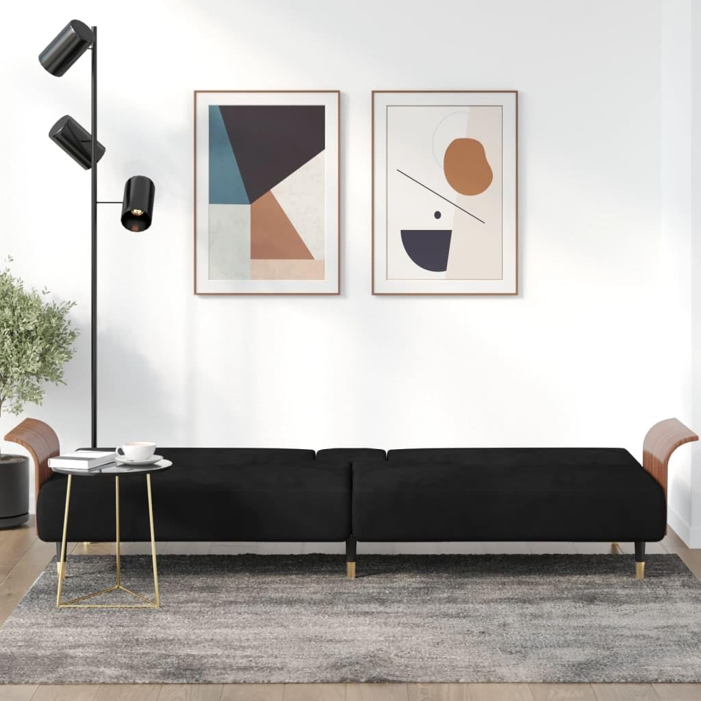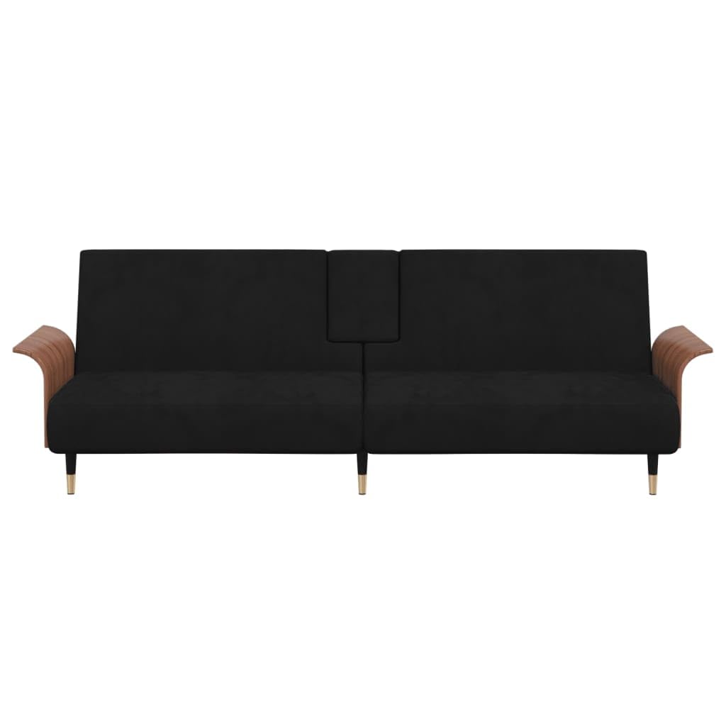 vidaXL Modern Black Velvet Sofa Bed with Cup Holders, Durable Plywood and Metal Frame, Foam-Filled for Comfort, Compliant with Prop 65