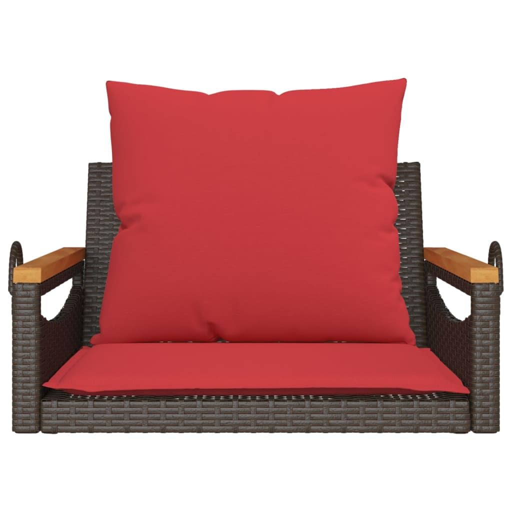 ** vidaXL Outdoor Swing Bench with Cushions, Brown Poly Rattan, 63x62x40 cm, Hanging Seat for Garden/Patio