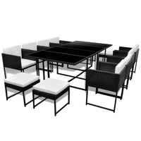 Dieses Rattan-Esszimmer-Set für 12 Personen hat ein elegantes Design und besteht aus 1 Tisch, 8 Stühlen und 4 Hockern, 12 abnehmbaren Sitzkissen und 8 Rückenkissen. Eine großartige Wahl für Essen im Freien oder zum Entspannen auf der Terrasse oder im Garten.