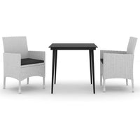 vidaXL Patio Dining Set 3 Piece with Cushions Garden Outdoor Terrace Balcony Dining Table and Chair Seat Seating Furniture Poly Rattan and Glass