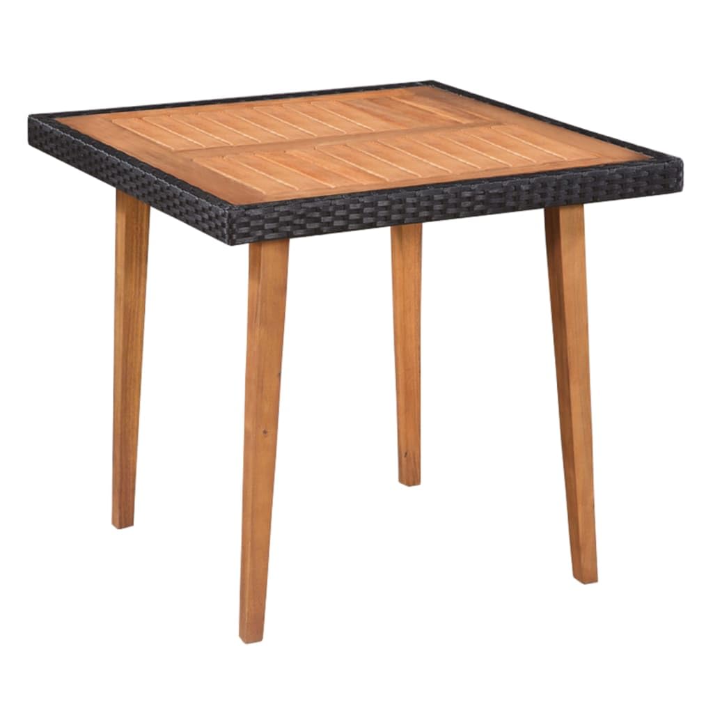 Our vintage poly rattan dining set is a perfect combination of style and functionality. The set will become an eye-catcher in your garden or on your patio! Thanks to the PE rattan, the seating area and backrest of the chairs are water resistant and easy to clean. The solid acacia wood frame ensures the furniture set is stable and durable and gives it a rustic and retro style. All items are easy to assemble. Delivery includes 1 dining table and 4 dining chairs. Note: We recommend covering the furniture set in the rain, snow or frost.Color: Black and brownMaterial: PE (Polyethylene) rattan + solid acacia woodDining table dimensions: 31.5" x 31.5" x 29.1" (L x W x H)Chair dimensions: 22" x 24 x 34.6" (W x D x H)Seat width: 18.1"Seat depth: 18.9"Seat height from the ground: 17.3"Armrest height from the ground: 24.8"Easy to assembleDelivery includes 1 table and 4 chairs