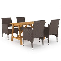 vidaXL Patio Dining Set 5 Piece Garden Outdoor Terrace Backyard Furniture Adjustable Dining Table and Chair Seating Seat Chair Brown