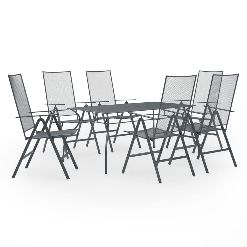 vidaXL Patio Dining Set 7 Piece Garden Outdoor Balcony Backyard Terrace Dinner Dinette Seating Table Chair Furniture Set Home Steel Anthracite