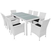 vidaXL Patio Dining Set 9 Piece, Dining Table Set with Glass Tabletop, Rattan Chairs with Cushions and Steel Legs, Outdoor Furniture Set, Cream White