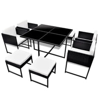 vidaXL Patio Dining Set 9 Piece, Patio Dining Table Set with Glass Tabletop, Rattan Chairs with Cushions, Outdoor Furniture Set, Poly Rattan Black