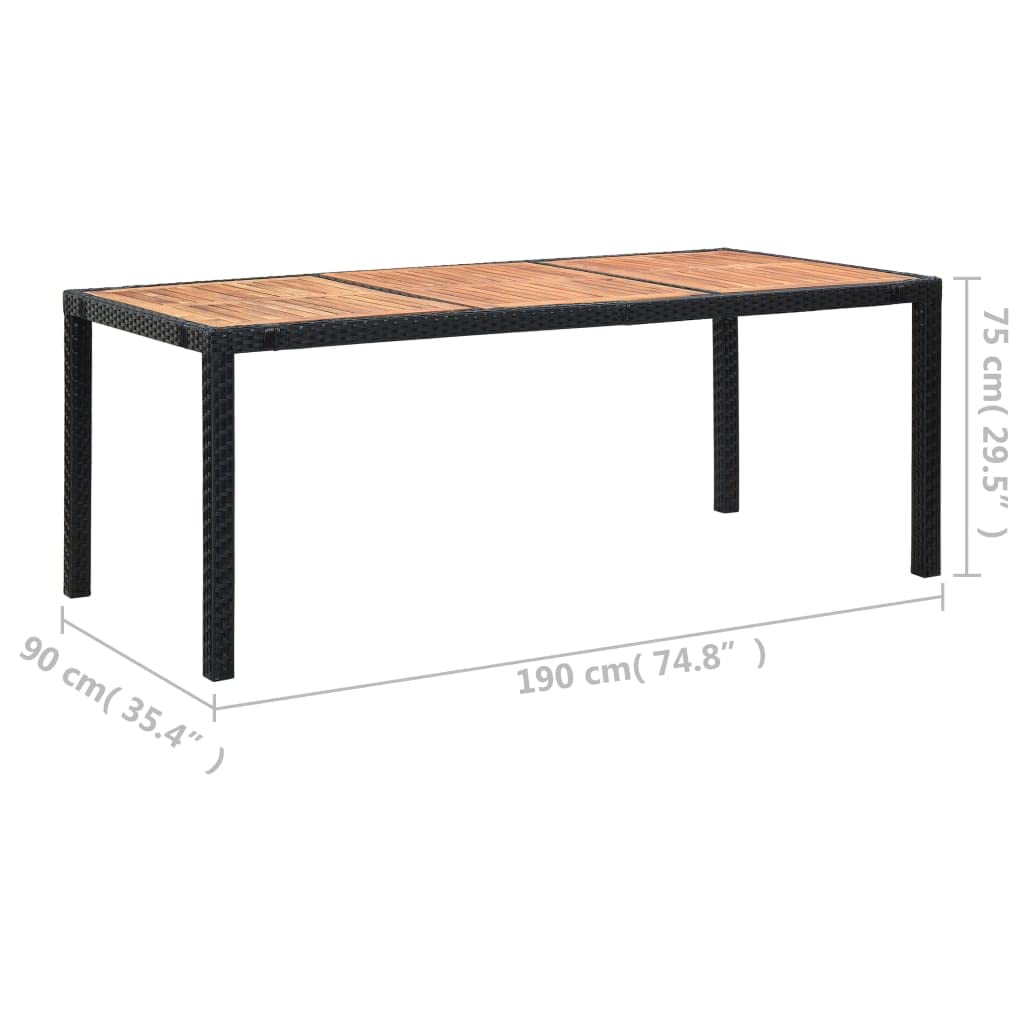 vidaXL Patio Dining Set 9 Piece, Patio Dining Table Set with Wood Tabletop, Rattan Chairs with Cushions for Garden, Scandinavian, Poly Rattan Black
