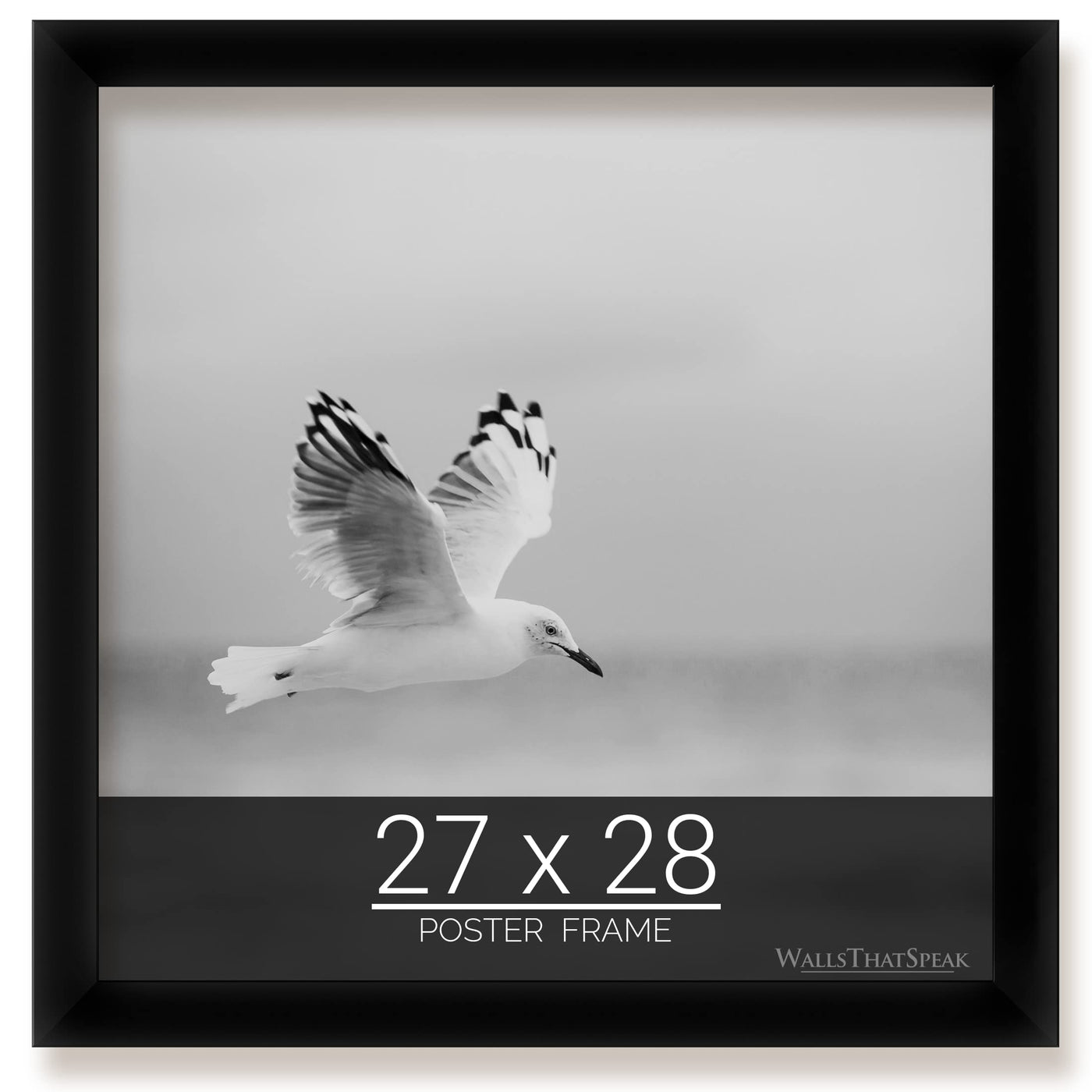 Q: What sizes of artwork or photos can fit in the wallsthatspeak 27x28 Black Picture Frame?A: The wallsthatspeak 27x28 Black Picture Frame is designed to accommodate various sizes of artwork, posters, and photos that are 27x28 inches in dimensions, making it an ideal choice for large prints and puzzles.
