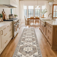 Q: What size is the washable kitchen runner rug?A: The washable kitchen runner rug measures 2 feet by 10 feet (2' x 10'), making it perfect for hallways, dining rooms, and kitchens.