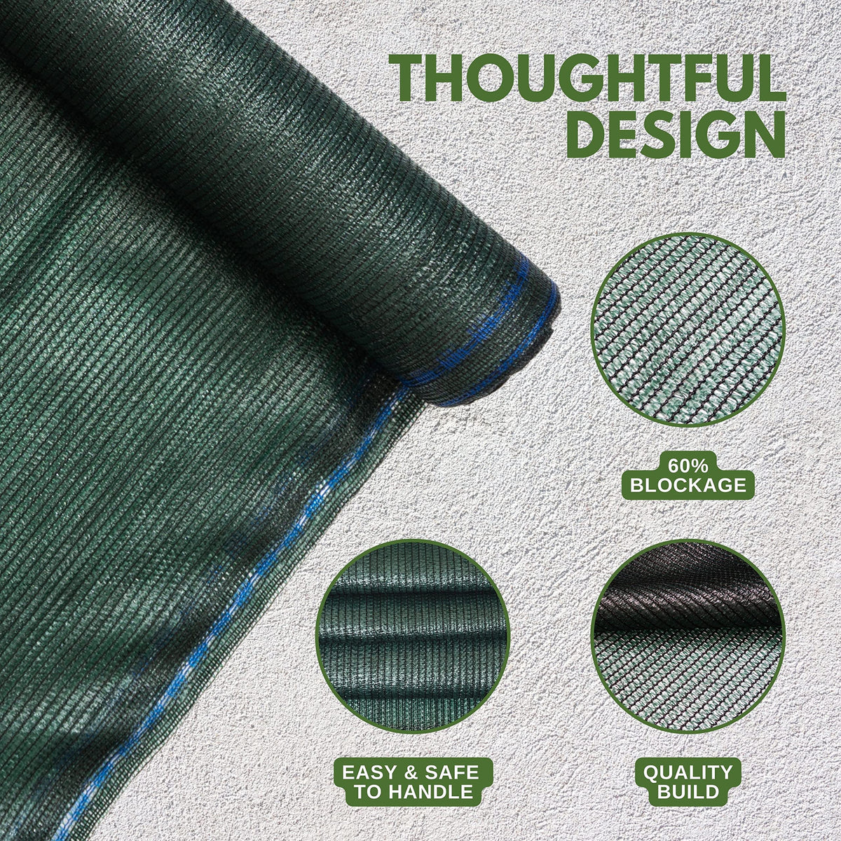 Windscreensupplyco] 60% 5'10'' X 100 Ft Eyelets Shade Cloth Roll Sunblock Shade Uv Resistant Net For Garden Greenhouse Flower Plant Patio Kennel, Green - Ps6160Grn