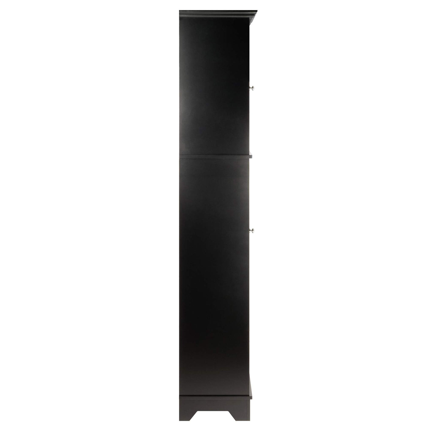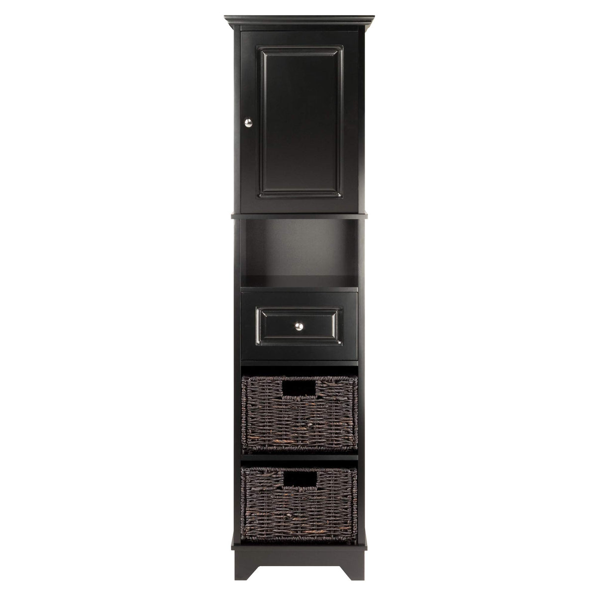Ideal for anywhere in your home, the Winsome Wood Wyatt Cabinet is stylish and functional. Its elegant, rich black finish will add a touch of sophistication to any interior. It provides plenty of storage space for books, art, photos and more. The top of this black wooden cabinet features a wooden door with an adjustable shelf within. The middle section has open storage compartment and a drawer. The bottom includes a two-section storage area. Included with this unit are two foldable chocolate tone baskets that are a perfect fit for the bottom storage or to use anywhere else that may be convenient. So whether it’s in your living room, office or walk-in closet, this cabinet is constructed out of medium-density fiberboard (MDF) and is sure to deliver durable performance for years. The Winsome Wyatt Cabinet is ready for assembly, while the baskets only need to be prompt up and will be ready to use. Conveniently ships in 1 box. Replacement parts can be requested directly to the manufacturer within 60 days from date of purchase